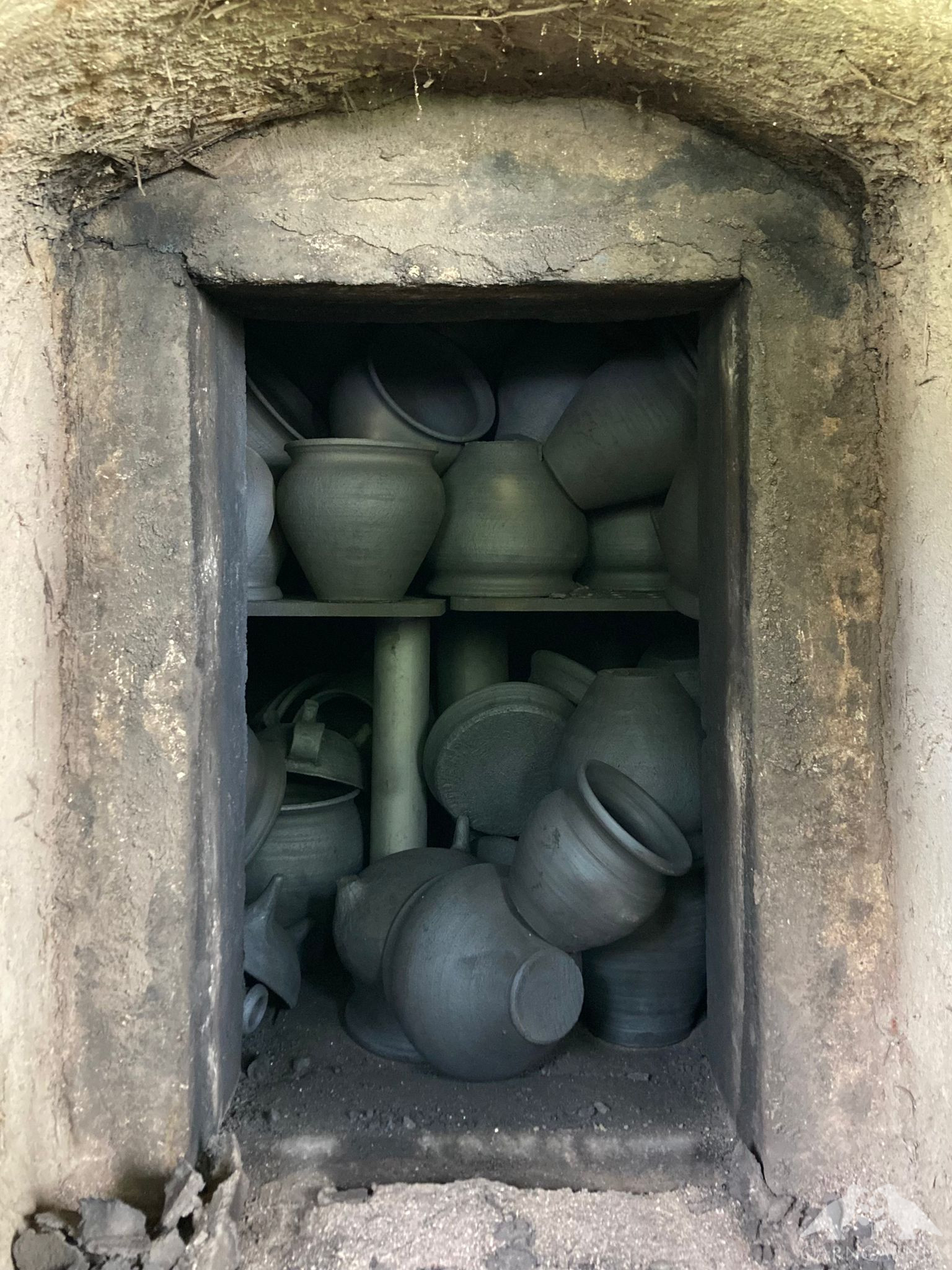 Listopad zaskoczył nas zimową i już świąteczną aurą. Piec garncarski po wypale stygł długo. Daliśmy sobie czas na wystudzenie ceramiki. Gdy zaczął padać śnieg rozpoczął się proces wyładowywania wsadu. Spójrzcie jakie piękne czarne naczynia powstały.